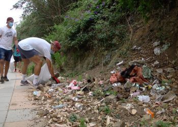 Treinta miembros de la Asociación Ceuta Sin Plástico han recogido 192 kilos de basura acumulados en la cuesta que sube ...