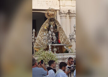 Nuestra querida Virgen de los Mares, salió por el pórtico de la Iglesia de África, donde se leía: Madre y ...