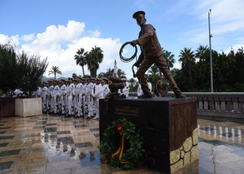 El Monumento al Marinero de Ceuta preside desde hoy las vistas a la bocana del Puerto que pueden contemplarse desde ...