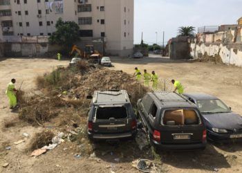 Un equipo de operarios de Tragsa ha invertido los últimos dos días en limpiar el céntrico Patio Hachuel, en Paseo ...