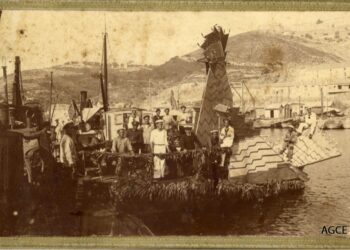 Un barquito blanco de pesca con la borda roja y la caseta cuadrada sale a faenar. Son las 8.30 de ...