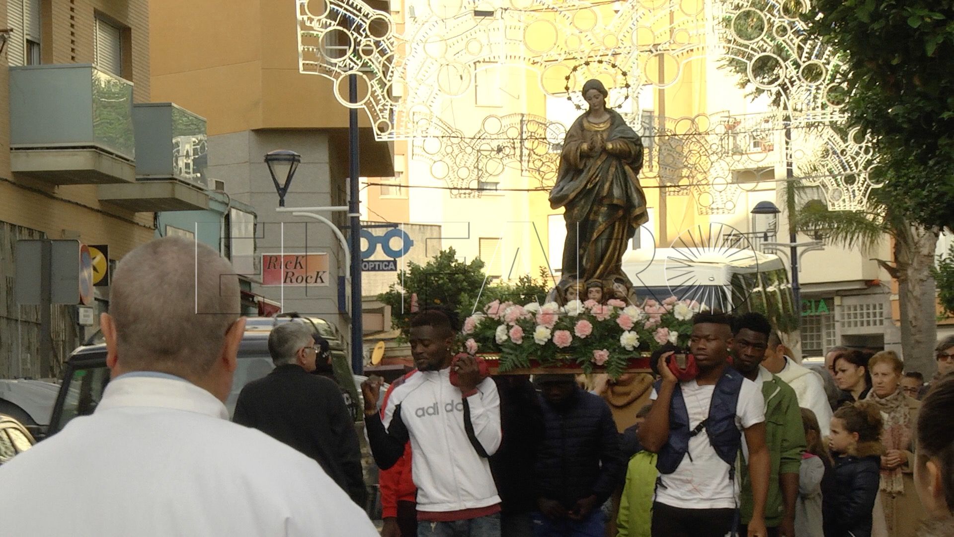 El párroco ha querido contar por primera vez con la ayuda de los jóvenes del CETI para portar la Imagen