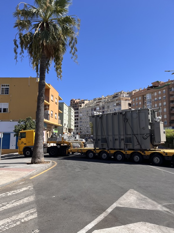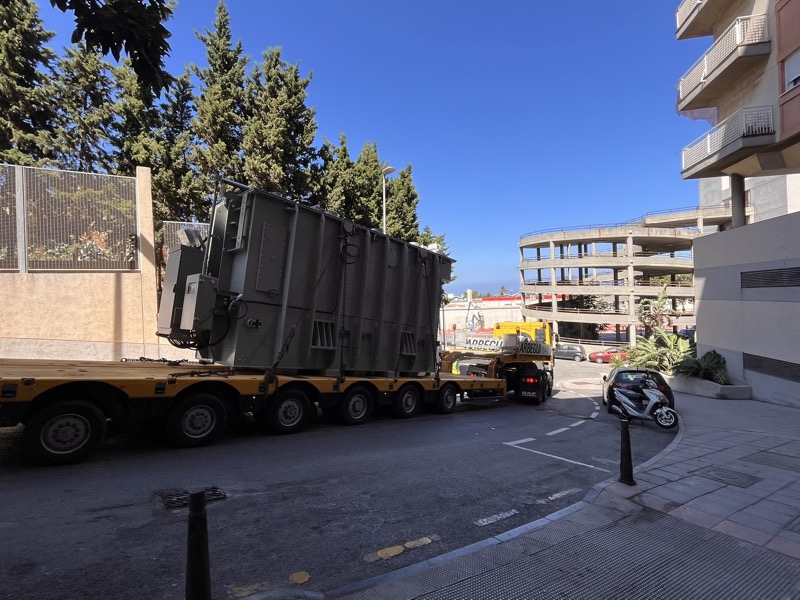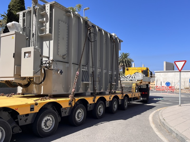 El traslado e instalación de estos transformadores ha requerido una logística especialmente compleja. Con un peso individual superior a las 53 toneladas, fue necesario movilizar grúas de gran capacidad y coordinar un operativo específico para su transporte hasta la parcela donde se levanta la nueva infraestructura.