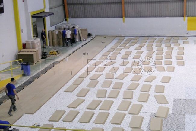Los trabajos de remodelación comenzaron con el alzamiento de la pista que, a día de hoy y como se ve en las imágenes proporcionadas por El Faro, se está colocando. Este nuevo suelo para la cancha viene directamente desde Francia.