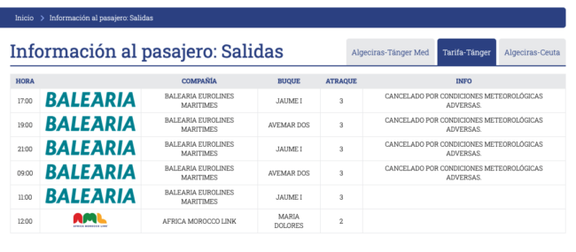 Ya con antelación, la Autoridad Portuaria de la Bahía de Algeciras (APBA) había indicado a los usuarios lo siguiente: “si vas a viajar este fin de semana desde el Puerto de Algeciras a los de Ceuta y Tánger Med, consulta el estado de las conexiones marítimas en http://apba.es/informacion-pasajero o 956585463”.
