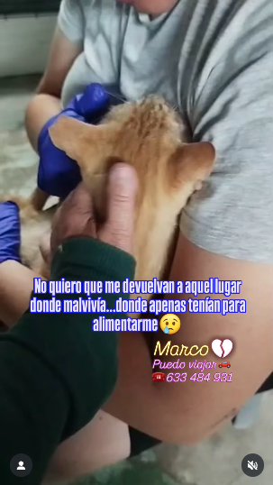 Según relata la Protectora, que vela por su bienestar, Marco fue localizado en estado grave. Uno de sus ojos estaba completamente dañado y tuvo que ser extirpado. El otro, el único con el que conserva algo de visión, se encuentra en deterioro progresivo. “Cada día que pasa, ve un poco menos”, denuncian.