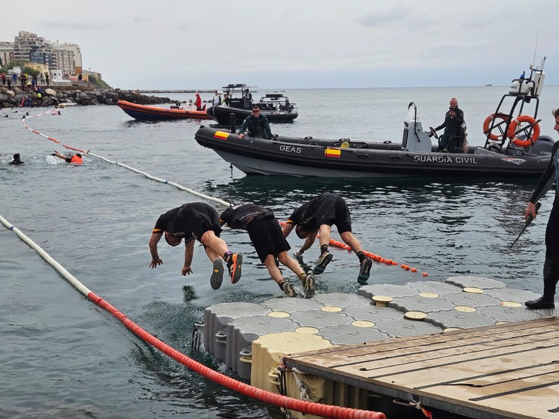 Otros obstáculos que aparecieron en el camino fueron, entre otros, el arrastre de vehículos en las murallas reales, o el castillo y los dados ya en la playa de la Ribera junto a la meta. Allí, al final, fue donde afloraron las emociones entre abrazos, conversaciones mezcladas con risas, reencuentros con familiares y amigos expectantes por escuchar, y algún que otro hombro de apoyo en el caso necesario para terminar de dar los últimos pasos hacia el final.