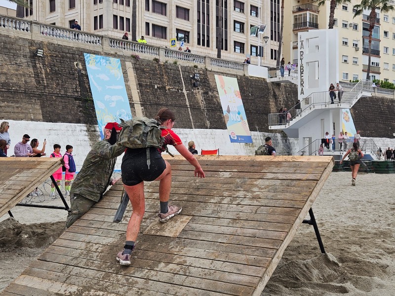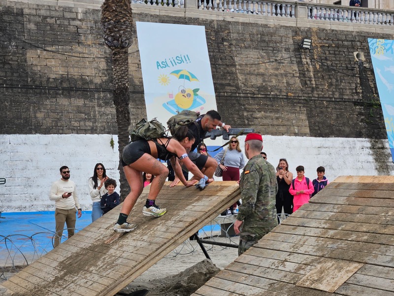 Ceuta volvió a volcarse con el ‘Desafío de los 300’. A volcarse y a revolcarse, por barro, mar e, incluso, por debajo de tanques, en una competición de gran exigencia que requirió de mucha fuerza, valor y pundonor para superar cada uno de los más de 30 obstáculos colocados en el entorno de la playa de la Ribera y sus alrededores.