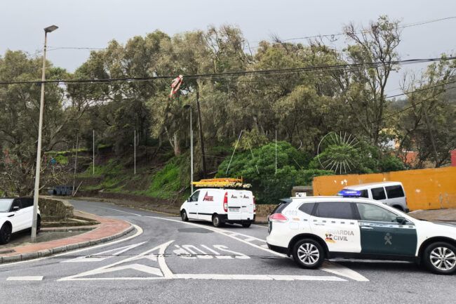 En la barriada está la Guardia Civil y los servicios de alumbrado para intentar solventar la solución, después de que muchos cables hayan quedado dañados por el temporal.