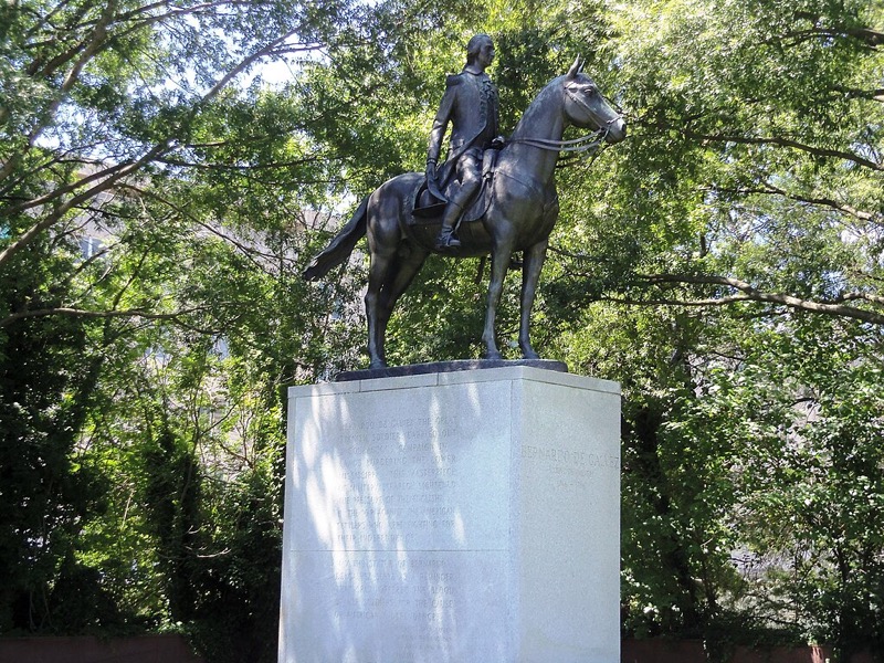 Una estatua ecuestre de Gálvez se alza en Washington D.C., muy cerca del Departamento de Estado de los EE. UU.