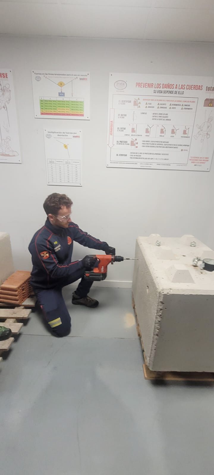 “Con esto se pretende actualizar a las nuevas normativas en materia de trabajos verticales, exigidas para poder desempeñar intervenciones en las que están implicados los rescates verticales”, señala Iván García, bombero y participante en la formación.