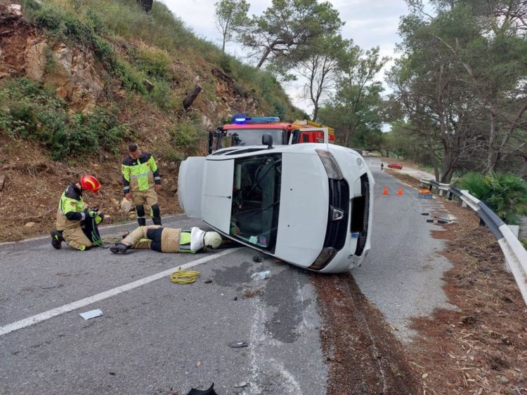 Mientras los Bomberos estuvieron realizando las labores para colocar el turismo en su correcta posición quedó cortada la carretera, evitando de esta manera que pudiera producirse alguna colisión grave ya que el vehículo había quedado en mitad de esta carretera.