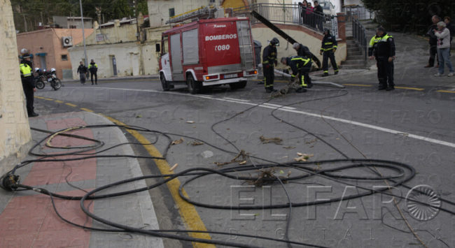Un poste de luz cayó ayer derribado a las 12:20 horas, por el viento que corría en San Amaro. La zona quedó sin suministro eléctrico y San Antonio sin cable telefónico. Bomberos acudió para subsanar el contratiempo, una salida más de todas la que tuvo, ya que también recogieron dos árboles caídos, una valla y recogieron una sombrilla que salió volando.