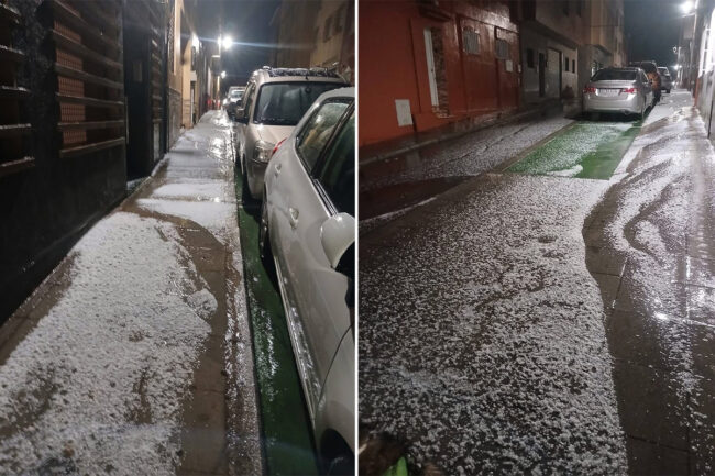 Durante unos minutos, las calles de la ciudad amanecieron teñidas de blanco por la acumulación de pequeños trozos de granizo que, pese a derretirse rápidamente, transformaron el paisaje urbano.