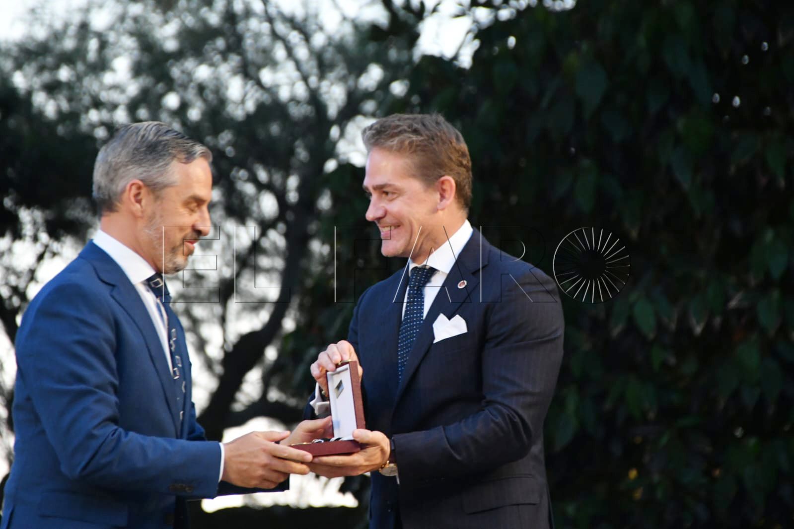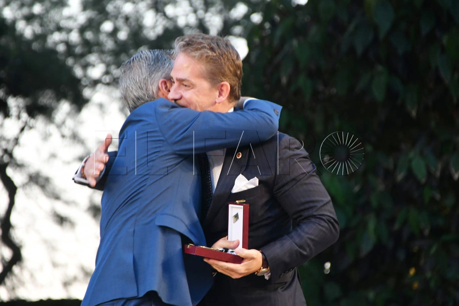 Luis Montoto procedió a la lectura del acta que justifica la entrega de la medalla, resaltando los méritos de Bravo, entre ellos su impulso al régimen fiscal especial. Acto seguido, Karim Bulaix hizo entrega de la Medalla de Oro a un Juan Bravo visiblemente emocionado.