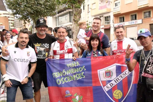 A falta de muy poco para el encuentro entre la AD Ceuta y la SD Huesca en La Liga Hypermotion, los aficionados de ambos conjuntos han compartido momentos de amistad y hermandad en la previa del choque.