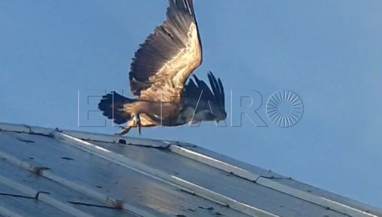 Tal y como se aprecia en el vídeo que han facilitado a este periódico, el buitre está intentando escapar de las gaviotas.