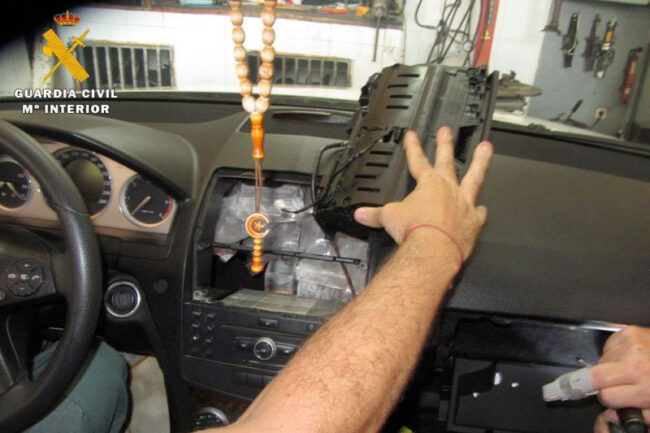 Los agentes sospecharon de la ocultación de narcóticos, procediendo al registro exhaustivo del turismo, dando así con los casi 10 kilos que llevaba en el asiento del copiloto.