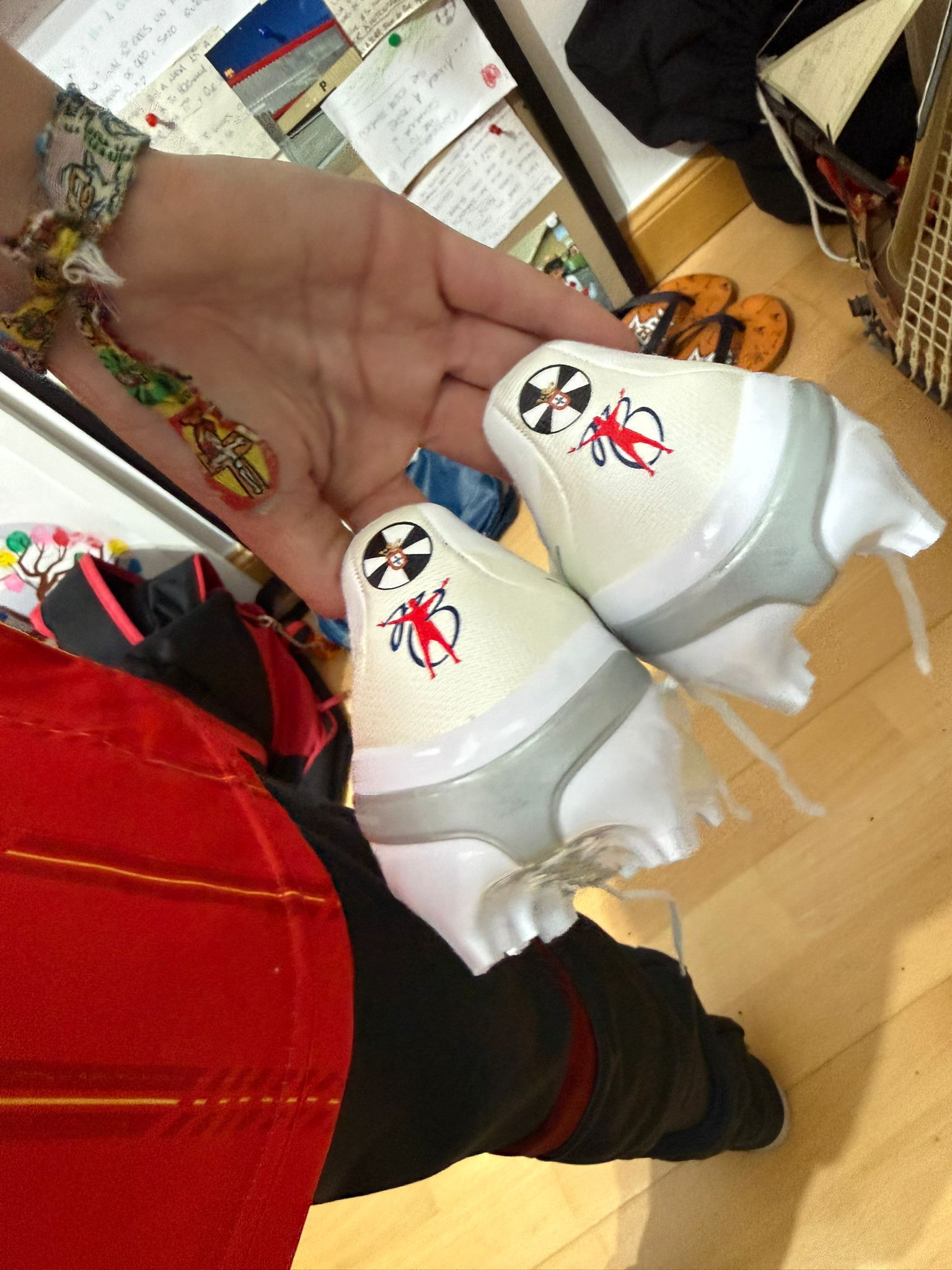 El sentimiento caballa ha trascendido completamente de padre a hijo, hasta el punto de que René, su hijo, luce en sus botines la bandera de Ceuta, en clara señal de apego.