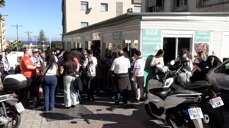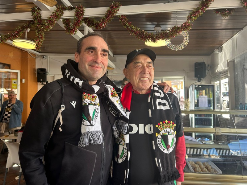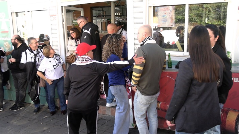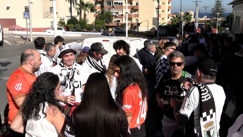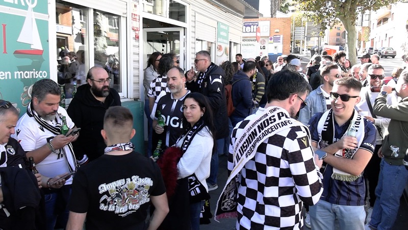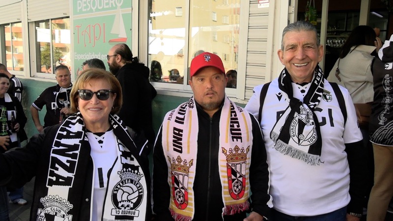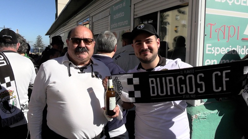 Una gran masa de aficionados blanquinegros, homogénea en color y heterogénea en equipos, compartía el buen ambiente y la fiesta del fútbol. Porras, cervezas, tapas y comida del mar, que aprovechaban los burgaleses por disfrutar.