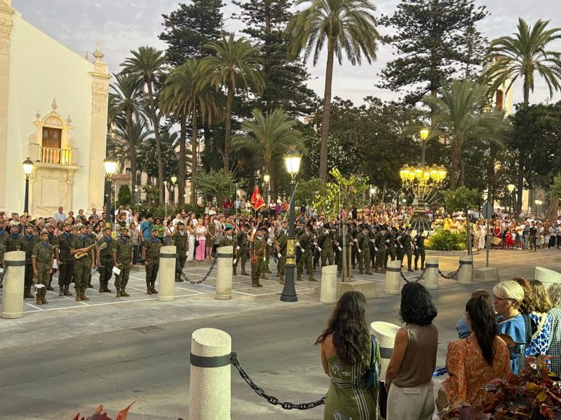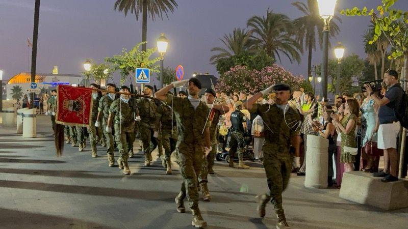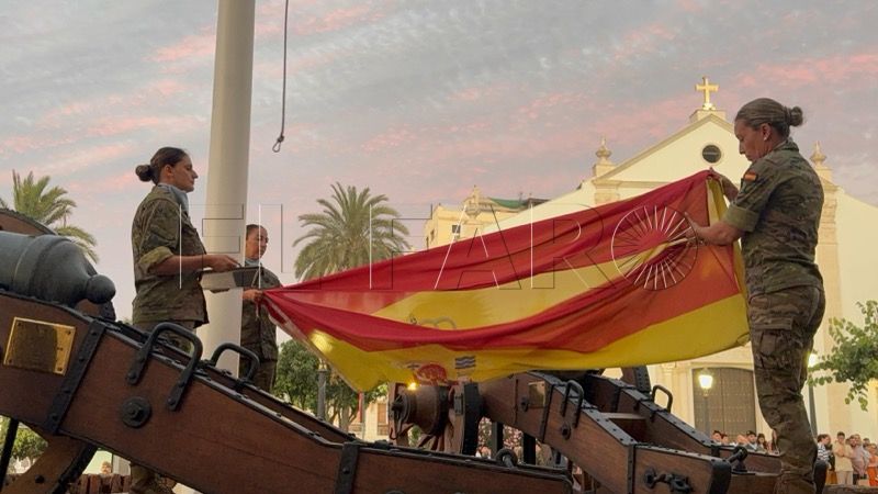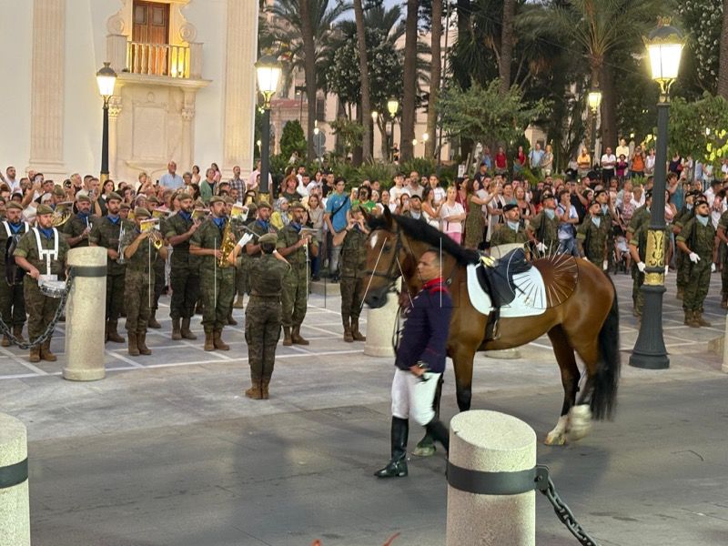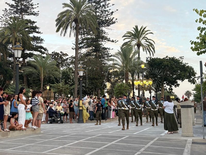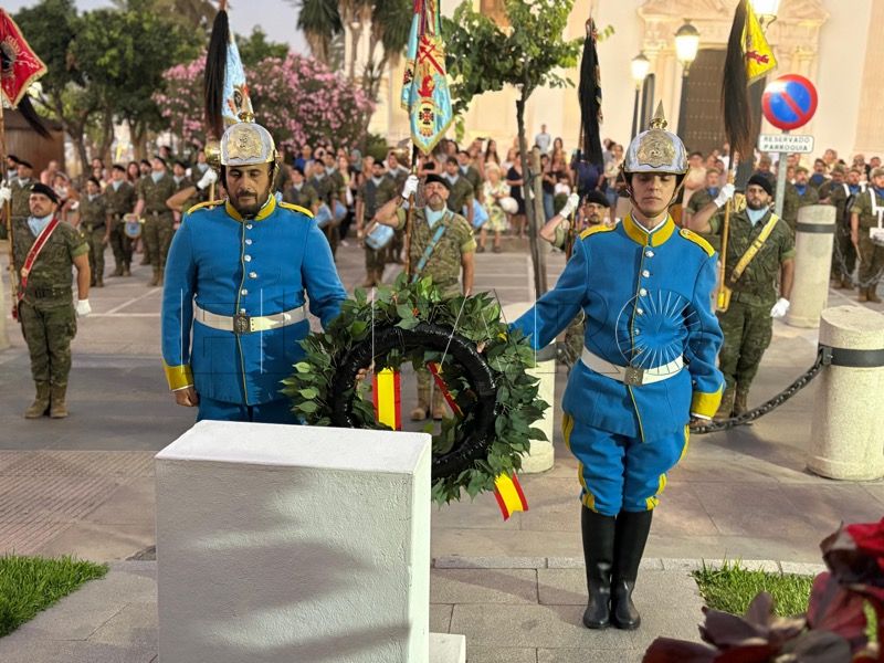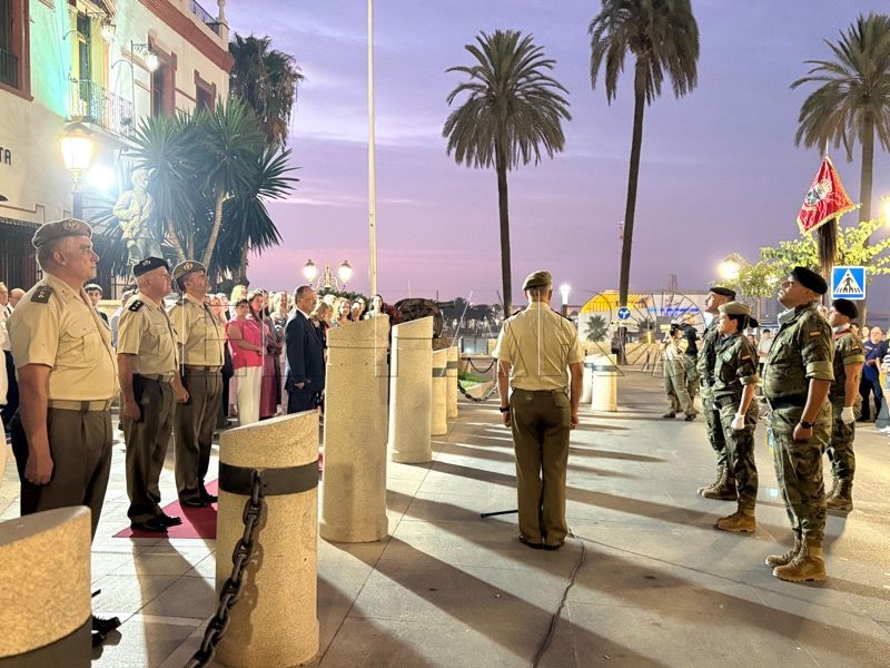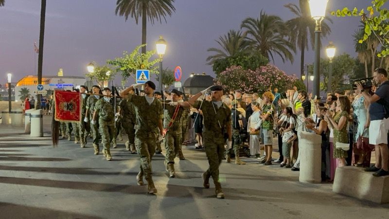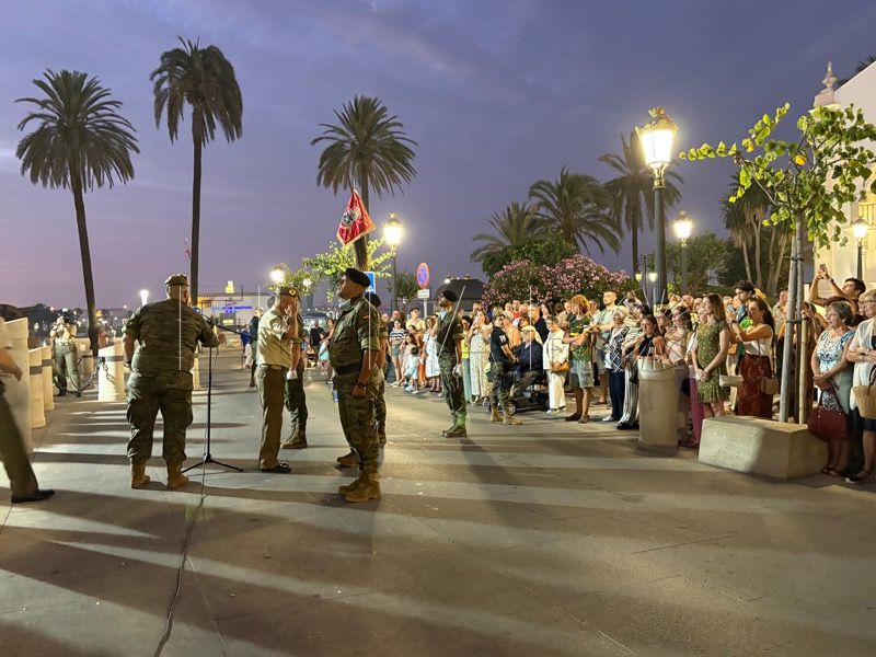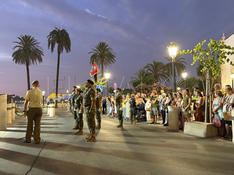 En un emotivo y solemne acto militar, el Regimiento de Caballería Montesa nº 3 de la Comandancia General de Ceuta ha celebrado esta noche un solemne arriado de bandera y homenaje a los caídos por España, con motivo de la festividad de Santiago Apóstol.