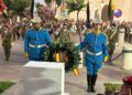 Depósito de la tradicional corona de laurel