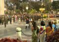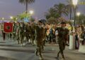 Finalizado el Toque de Oración, y una vez devuelta la bandera al interior del Cuartel General, se ha procedido a la retirada ordenada de guiones y banderines, manteniéndose únicamente el banderín de la Unidad de Honores.