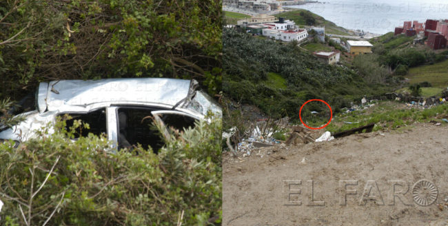 El vehículo, sin control, se precipitó por el barranco, dio varias vueltas de campana y varios metros más abajo quedó encajado entre los arbustos.