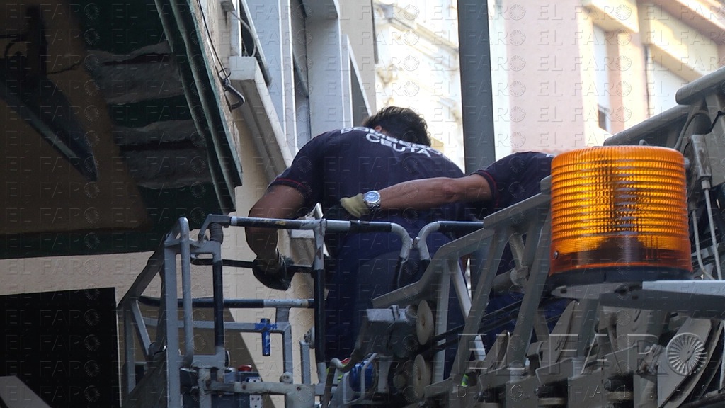 Los Bomberos se han desplazado esta tarde a la calle Echegaray para proceder al saneamiento de una cornisa que había caído sobre la vía pública.