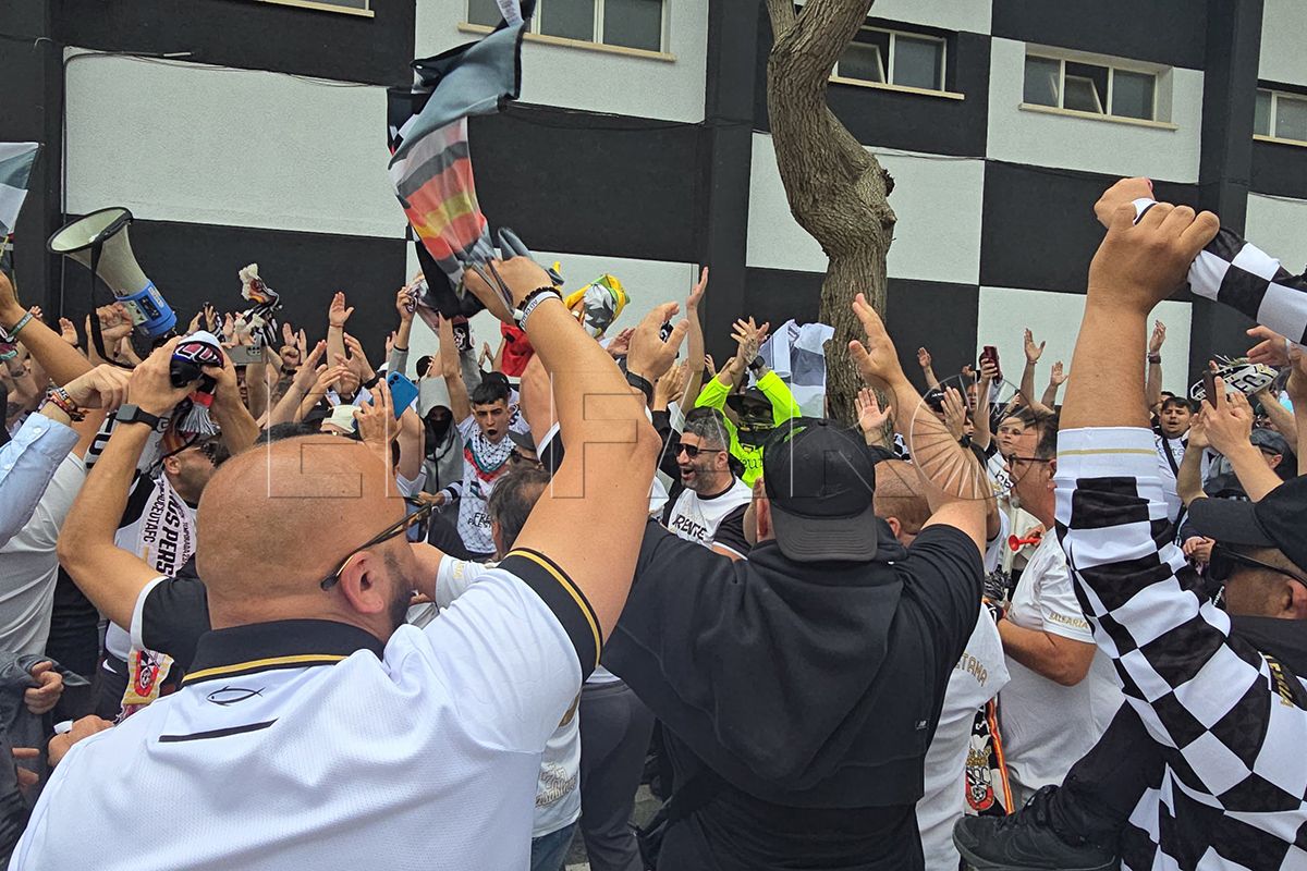 Con megáfono en mano, y los aficionados volcados hacia el equipo, todos cantaban los cánticos clásicos que se han ido repitiendo a lo largo de la temporada y que se ha escuchado tanto en el ‘Murube’ como fuera de él.