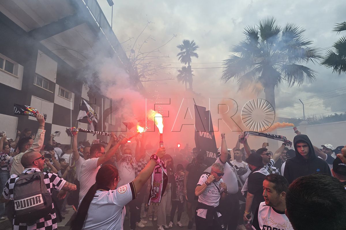 Un sábado diferente en la ciudad de Ceuta. La afición cumplió todas las expectativas que había para un recibimiento a la altura, de diez, para el partido que enfrenta al Ceuta contra el Mérida.