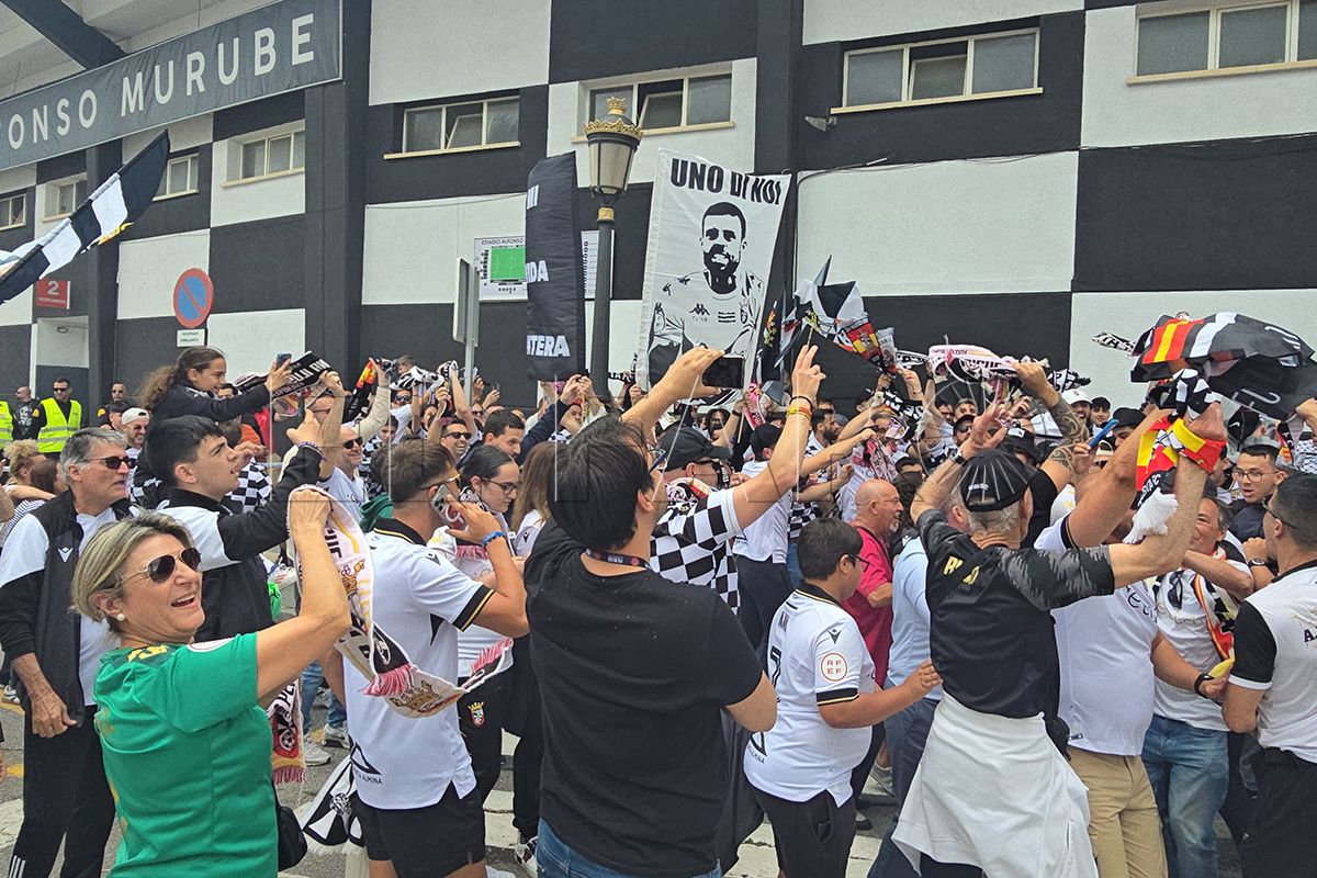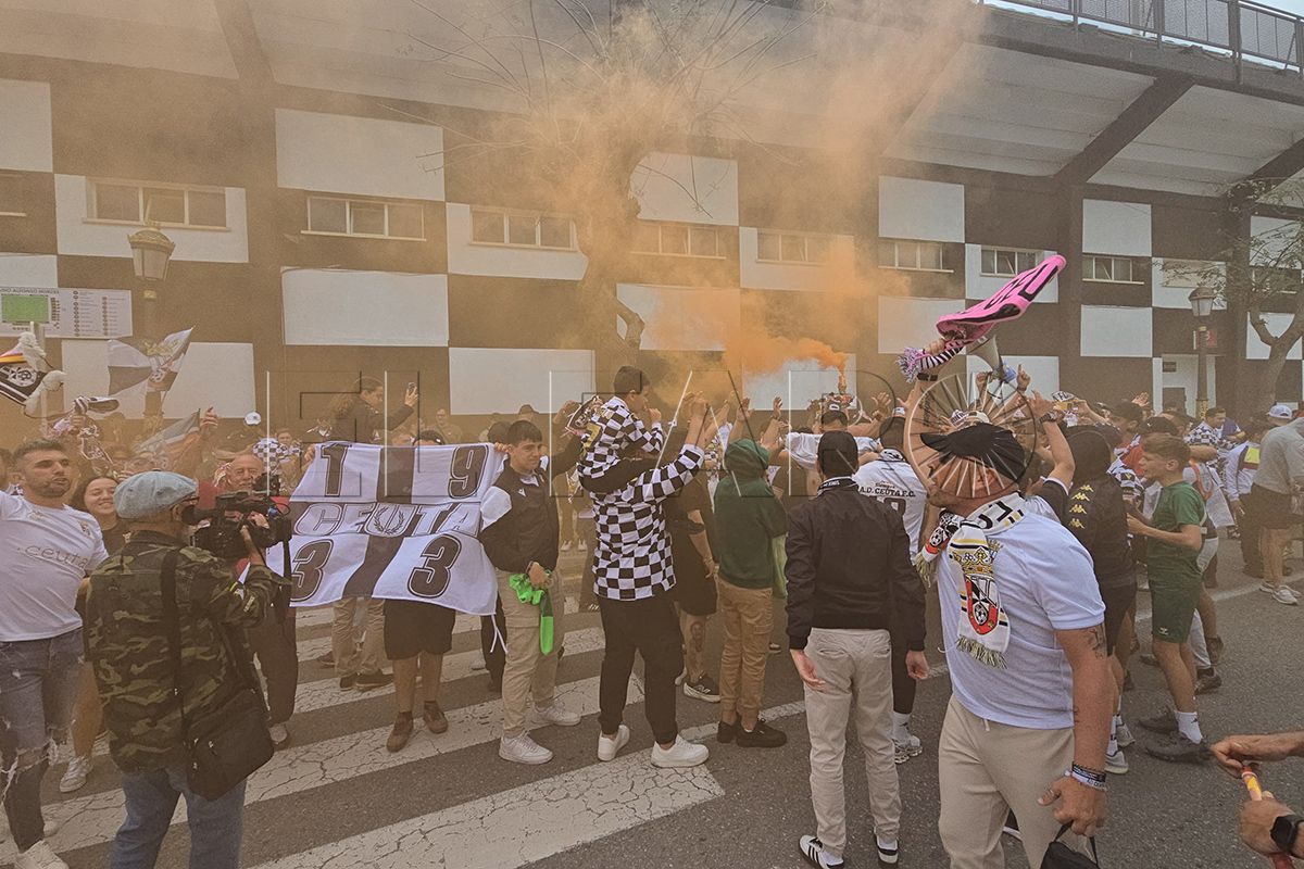 Los aficionados lo dieron todo en la previa del encuentro ante los emeritenses. Desde los más pequeños hasta los más grandes, no importaba la edad, todos en comunión alentaban por el equipo de su ciudad por el gran objetivo que están a punto de conseguir, dar el salto al fútbol profesional.
