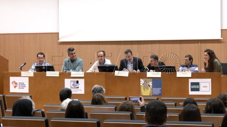El salón de actos del Campus Universitario ha acogido una mesa redonda en la que han intervenido los actores de la reconocida película ‘CampeoneX’:  Ángel Medina, Roberto Sánchez, Alberto Nieto, Sergio Olmos y Francisco Fuentes ‘Paquito’, quienes han estado acompañados en su visita a Ceuta de la directora de Cultura de la Fundación ‘AMÁS social, Allende López.