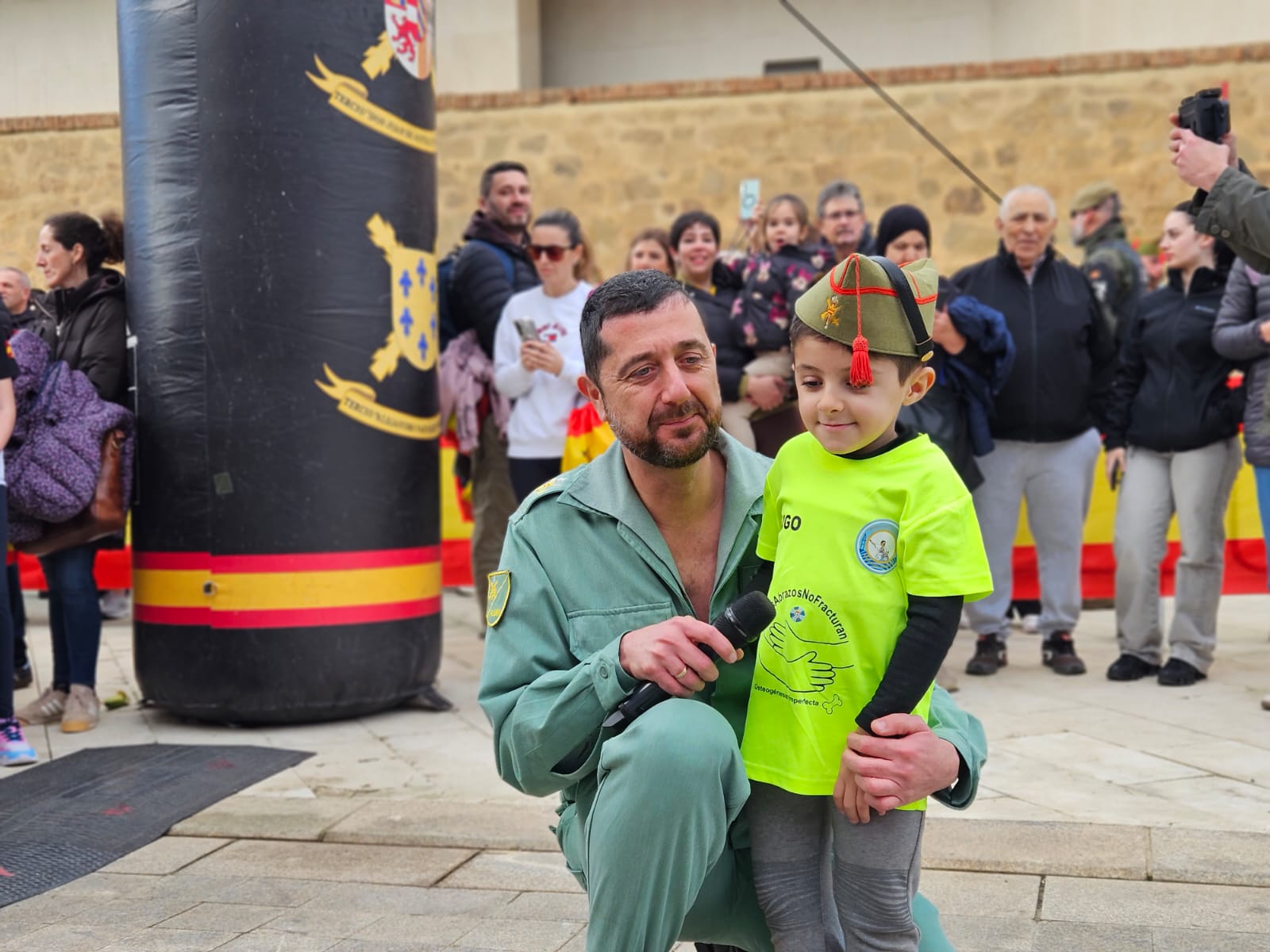 Llegó el momento del tercer cañonazo de la mañana, un pequeño, Hugo, lo pegó. Él es un niño de 8 años que sufre de Osteogénesis Imperfecta. Como él hay otros tres niños en Ceuta y se calcula que unas 3.000 personas en toda España. Este sábado, en la Cuna de la Legión ha habido espacio para visibilizar la necesidad de apoyo en la lucha contra una de las enfermedades consideradas raras.