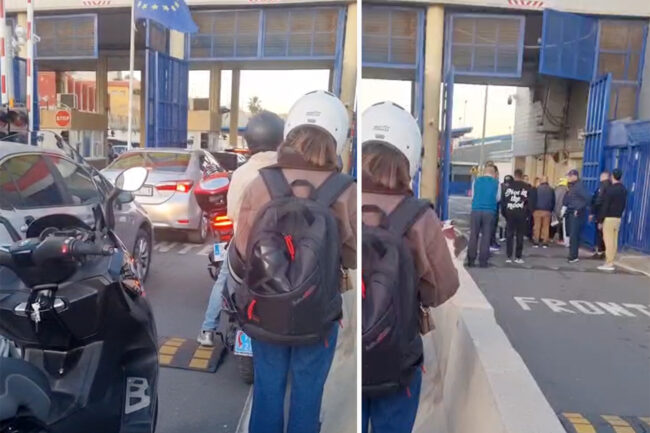Ceutíes que iban a entrar a nuestra ciudad en moto tras pasar un día en Marruecos se veían mezclados con coches y bloqueados en el lado español durante algo más de hora y media.
