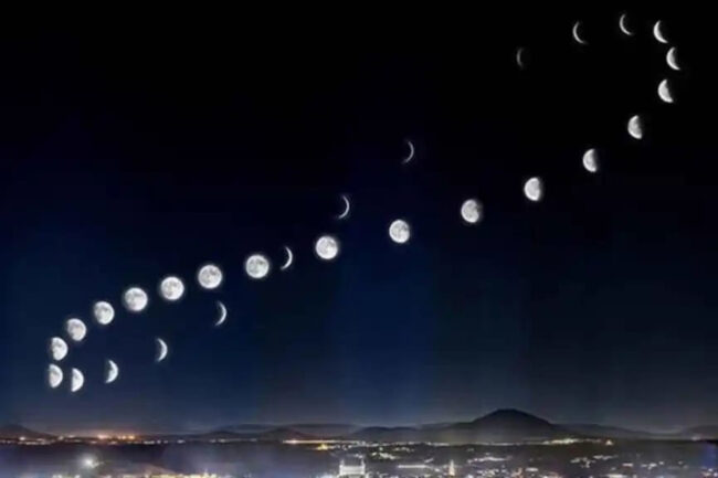 Cuando miramos la Luna, vemos que parece moverse a lo largo de una línea curva invisible llamada analema lunar, que se puede ver desde cualquier lugar del mundo. Este movimiento se produce por la combinación desajustada de al menos cinco increíbles movimientos. Por una parte, por el movimiento de rotación de la Tierra sobre su propio eje y por el de su traslación alrededor del Sol. Por otra parte, por el movimiento de rotación de la Luna sobre sí misma, ¡como una peonza!, por su traslación alrededor del Sol y, por último, por su recorrido alrededor de la Tierra mientras refleja la luz del Sol, lo que da lugar a las diferentes fases que vemos.