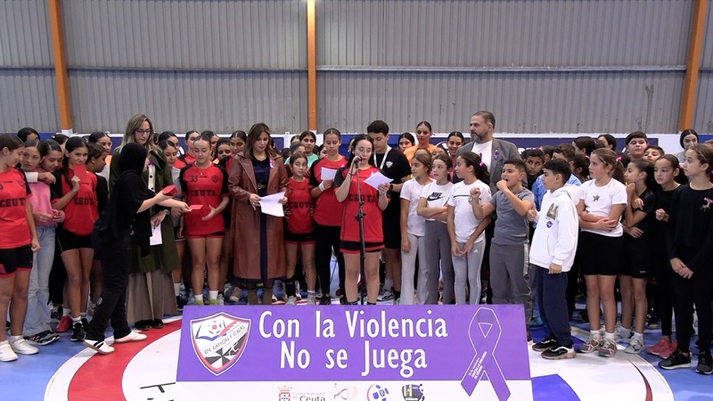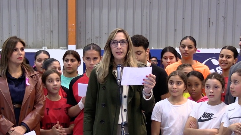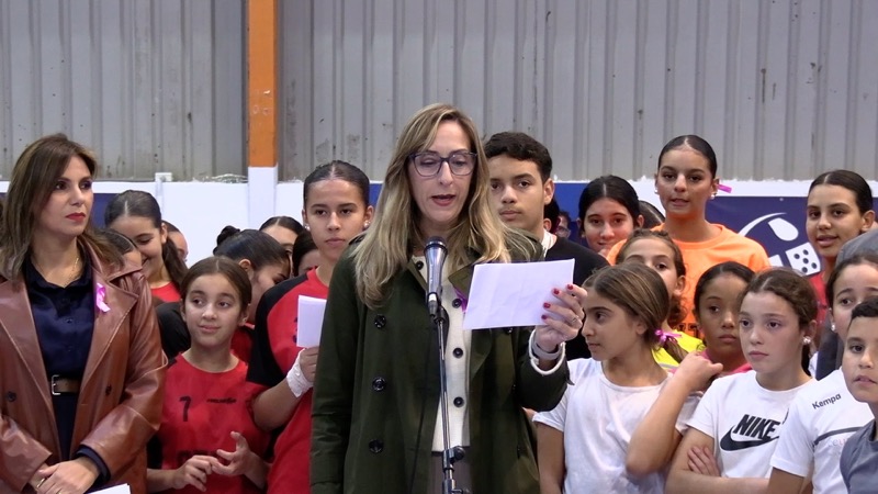 La consejera Nabila Benzina, Araceli García del ICD, y jugadoras del BM Ramón y Cajal leyeron un manifiesto para poner en valor este día y eliminar la lacra social machista que hay por desgracia actualmente.
