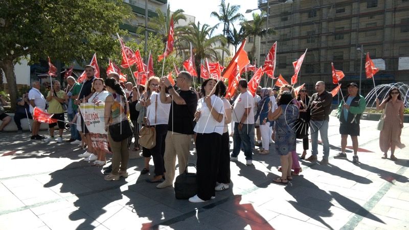 La protesta se suma a otro acto público celebrado este martes. A lo largo de la mañana, manifestantes junto a CCOO y UGT condujeron por la ciudad una caravana de vehículos. A golpe de claxon trataron de captar la atención de los vecinos para invitarlos a sumarse a la demanda.