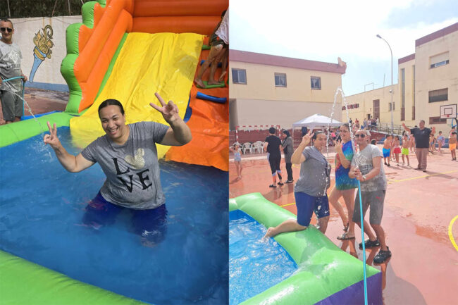 Uno de los grandes atractivos fueron las atracciones acuáticas, con una gran colchoneta y un cañón de espuma que arrancaron risas a cada grupo de estudiantes, desde Infantil hasta 6º de Primaria.