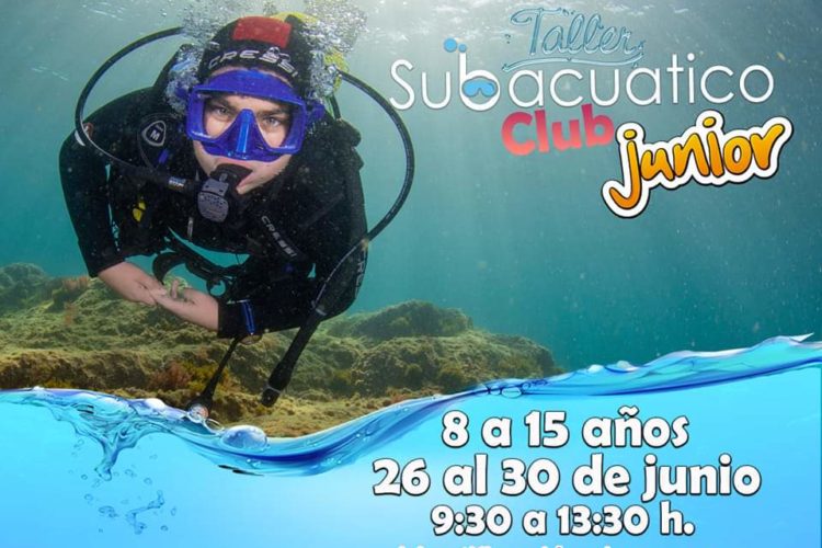 Para cerrar el taller Subacuático Junior, el último día se procederá a un bautizo de buceo en el que los principiantes podrán probar la experiencia del submarinismo a poca profundidad.