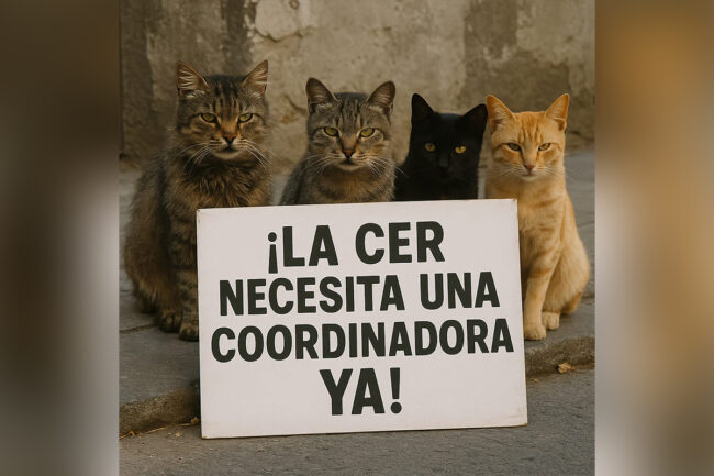 La empresa ha comunicado, a través del grupo de WhatsApp “Comunicaciones CER”, que los voluntarios ya no podrán capturar gatos para esterilizarlos, ya que no cuentan con nadie que coordine la actividad. Están a la espera de contratar a una nueva persona, pero no saben cuándo se resolverá la situación exactamente.