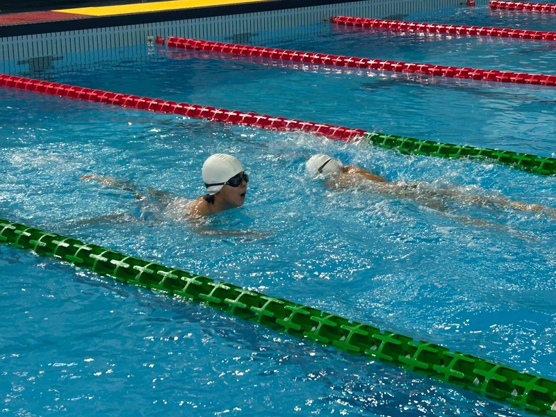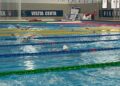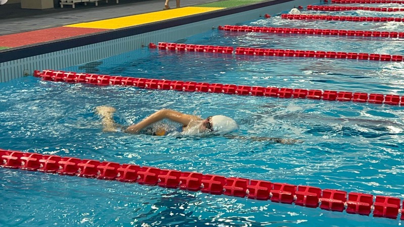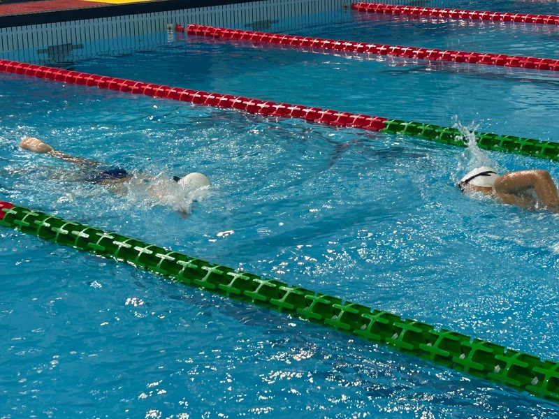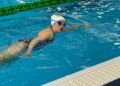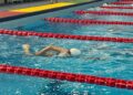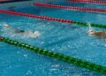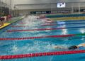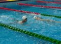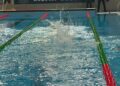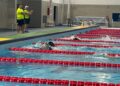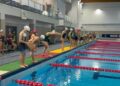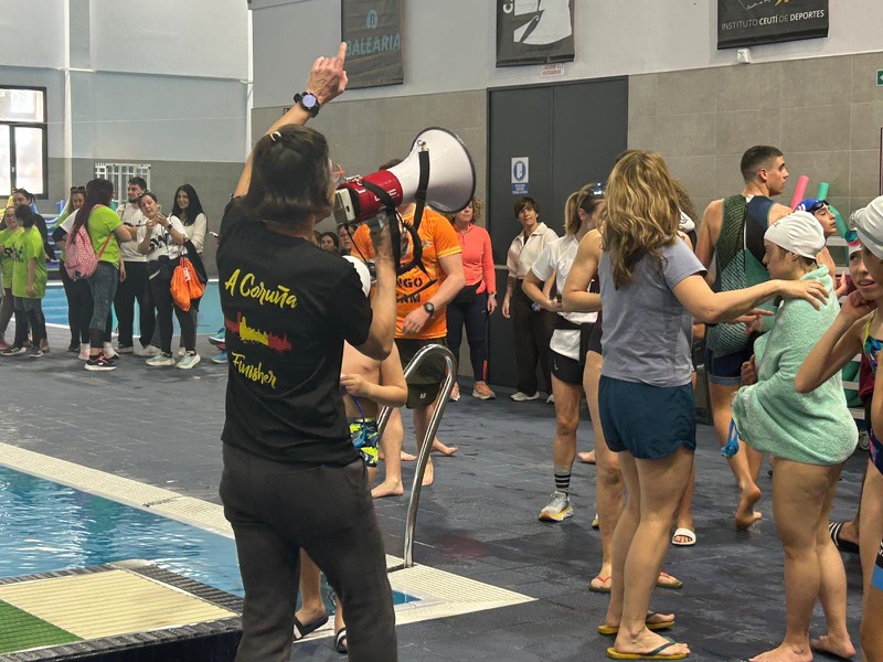 Los participantes saltaron a la piscina Lorena Miranda para demostrar su capacidad en el agua en el que la organización estipuló que en esta disciplina había que hacer cuatro largos (100 metros) para cada uno de los nadadores.