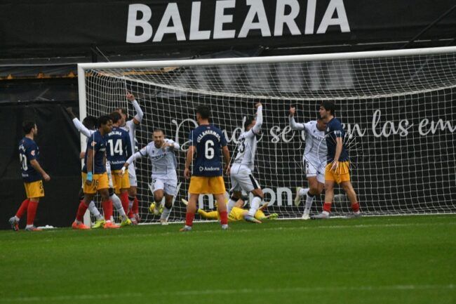 Fue el Andorra de seguido quien avisó. Justin García partió de fuera hacia dentro y obligó a Guille Vallejo a arrastrarse por el césped mojado para atajar el balón mordido y raso del hispano-portugués.
