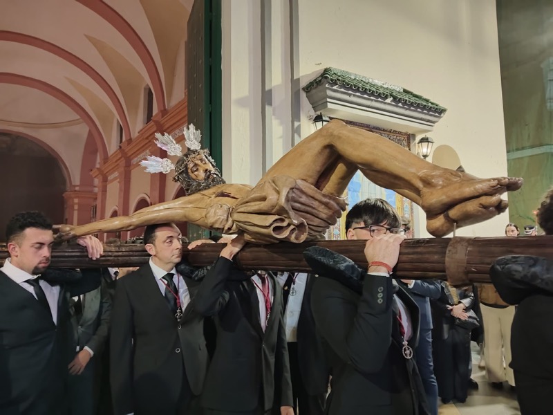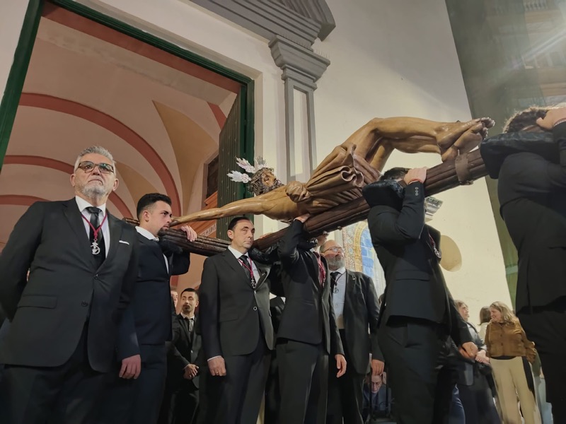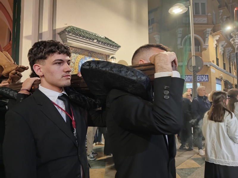 Tras comenzar, han hecho la primera estación de penitencia. Parados, han orado teas las pausas en las lecturas de Juanma Puig, hermano de Los Remedios. Devotos de diferentes edades lo han llevado a hombros para que, el pueblo, lo vea en su recorrido en vía-crucis.