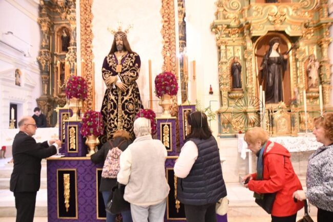 El Señor de Medinaceli estará expuesto hasta las 21:00 horas en la Iglesia de San Francisco. En un ambiente solemne, los asistentes se han acercado al altar. Este 7 de marzo es, para los caballas, un día especial en su calendario.