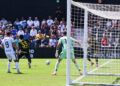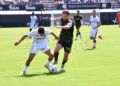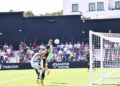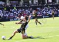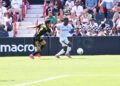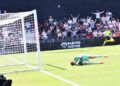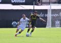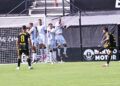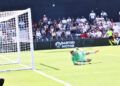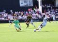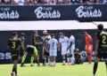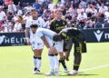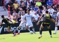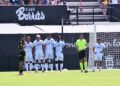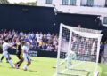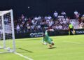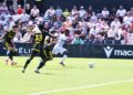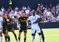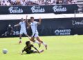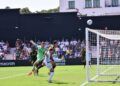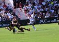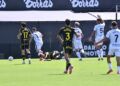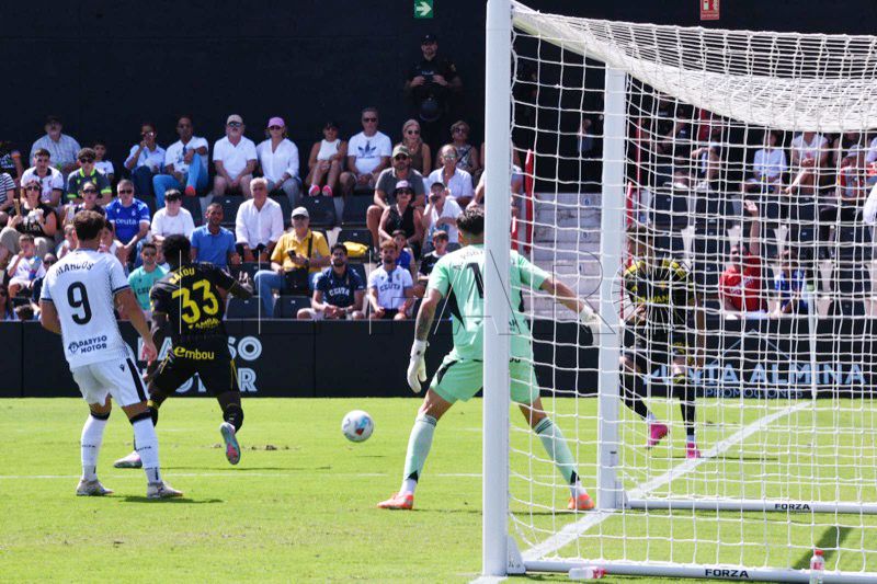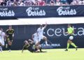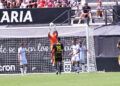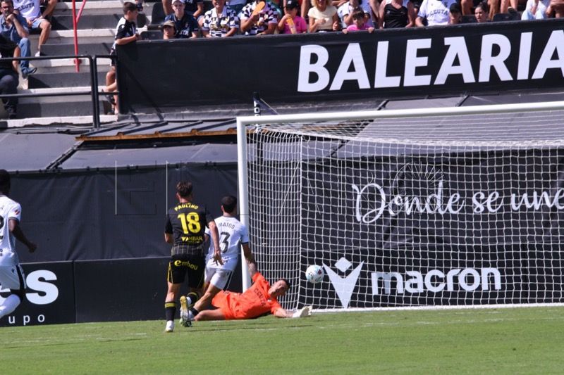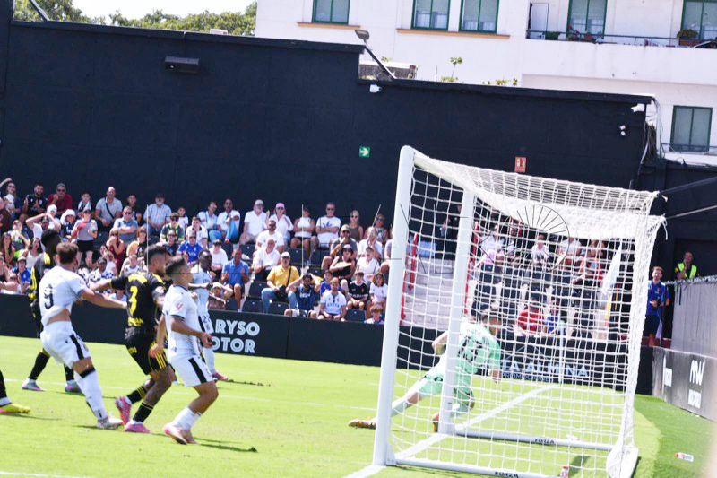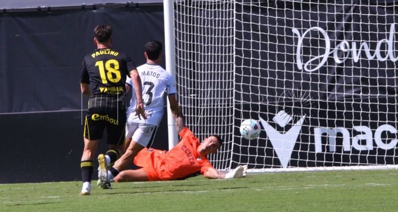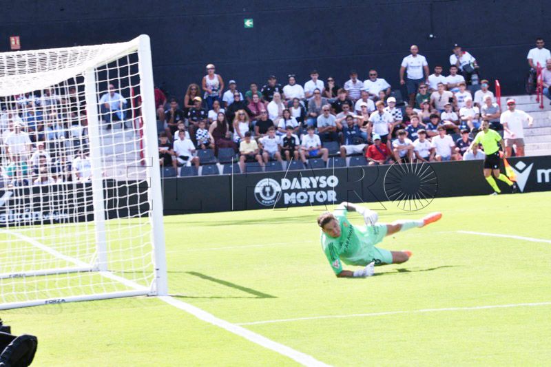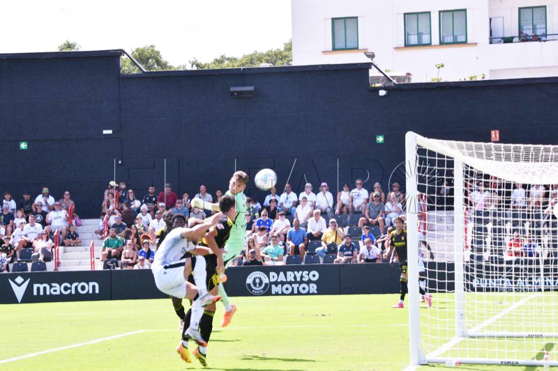 Sebas Moyano ejecutó la falta y se fue por encima de la portería de Guille Vallejo, que apenas tuvo trabajo en media hora de partido.