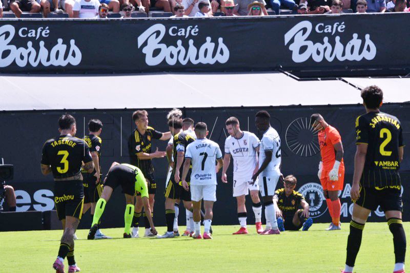 El árbitro, Alejandro Ojaos, iba a poner el listón alto del partido cuando en el minuto 6, Marcos Fernández recibió amarilla por evitar una contra del Zaragoza.