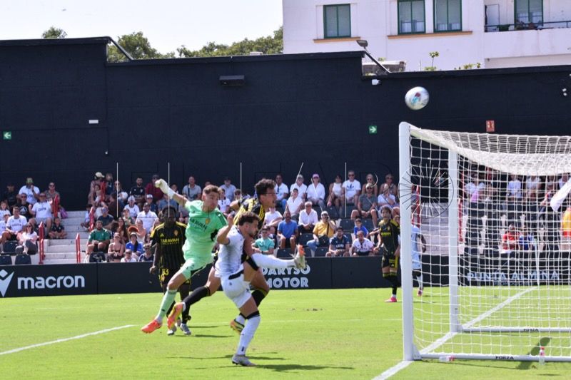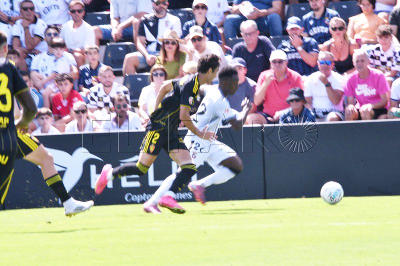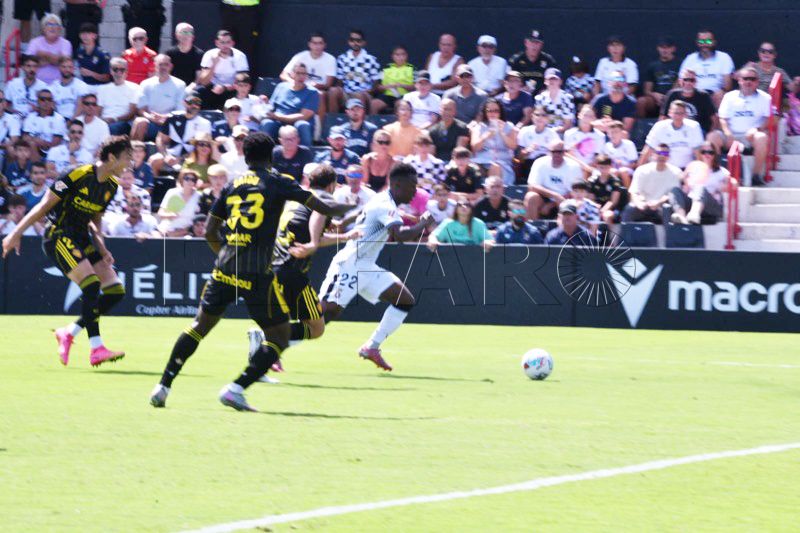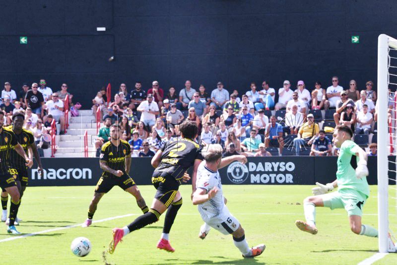 El equipo de José Juan Romero -hoy en el palco cumpliendo sanción por lo sucedido en Castellón- persistía por banda izquierda donde se encontraba Kialy Koné, que con su energía y su desborde se deshacía de sus rivales poniendo centros comprometidos al área defendida por el Zaragoza.