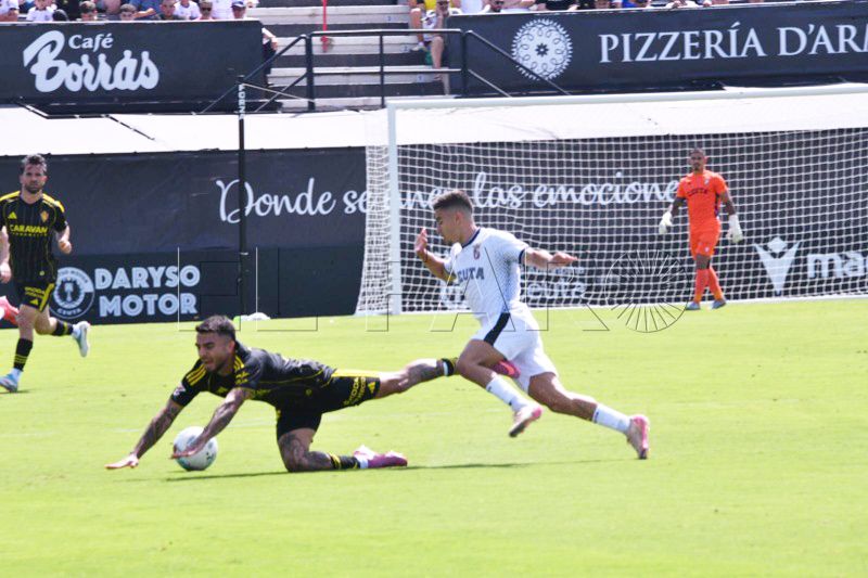 En el minuto 28, en una de esas apariciones esporádicas del Zaragoza, montó una gran contra llevada a cabo por Dani Gómez, que entre tres, se quería meter en el área pero Carlos Hernández le zancadilleó. Alejandro Ojaos pitó penalti pero a los segundos rectificó de que era fuera, concediendo una falta muy peligrosa al borde del área del Ceuta.
