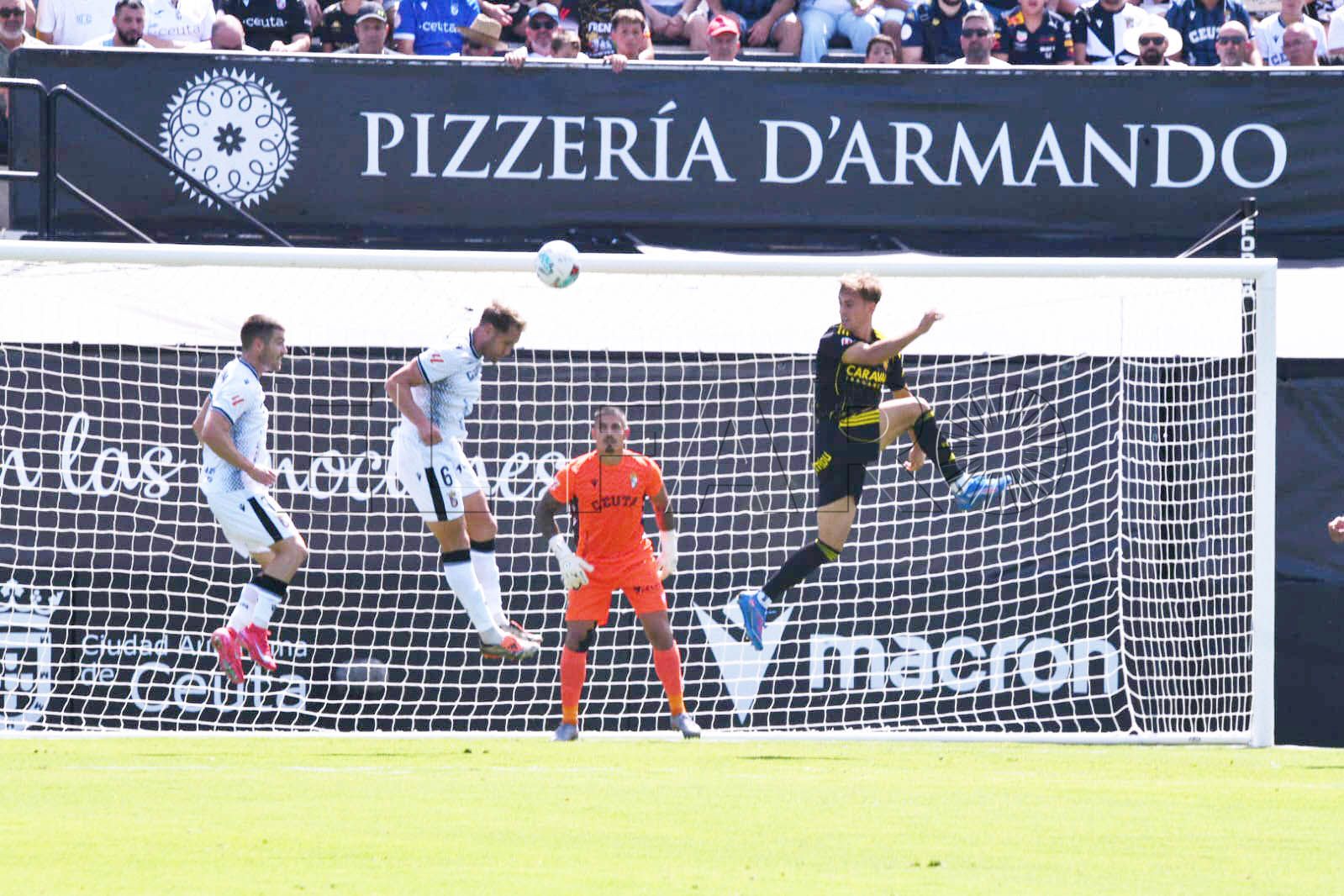 A pesar de ello, el Ceuta seguía insistiendo no perdiendo la cara al partido y embotellando al Zaragoza en cada centro que lanzaban al área en las botas de un Rubén Díez, omnipresente en el centro del campo y cuajando grandes minutos sobre el césped.